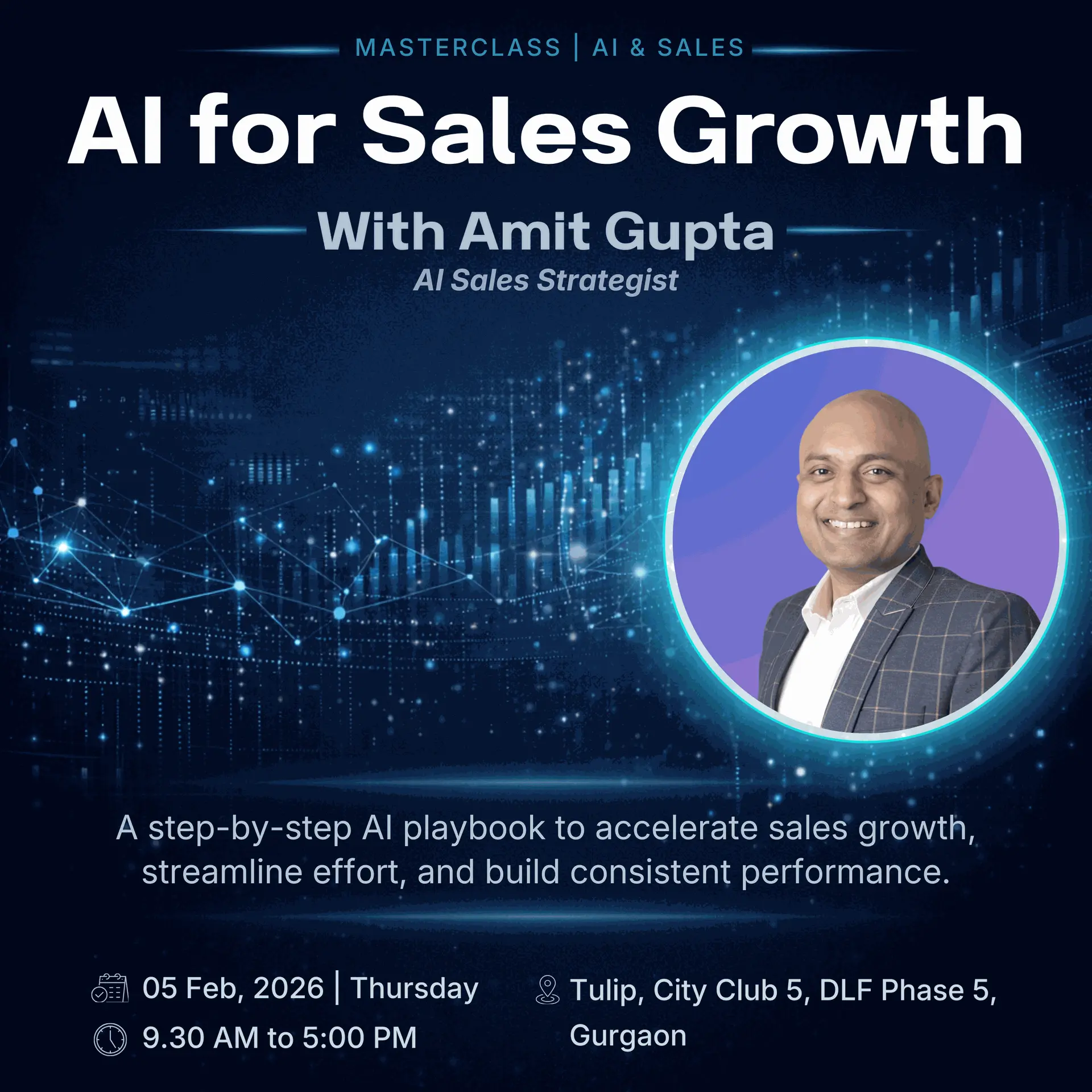AI for Sales Growth with Amit Gupta is a focused, hands-on session that brings together leaders and practitioners looking to apply AI in practical, business-ready ways — beyond buzzwords and experimentation.